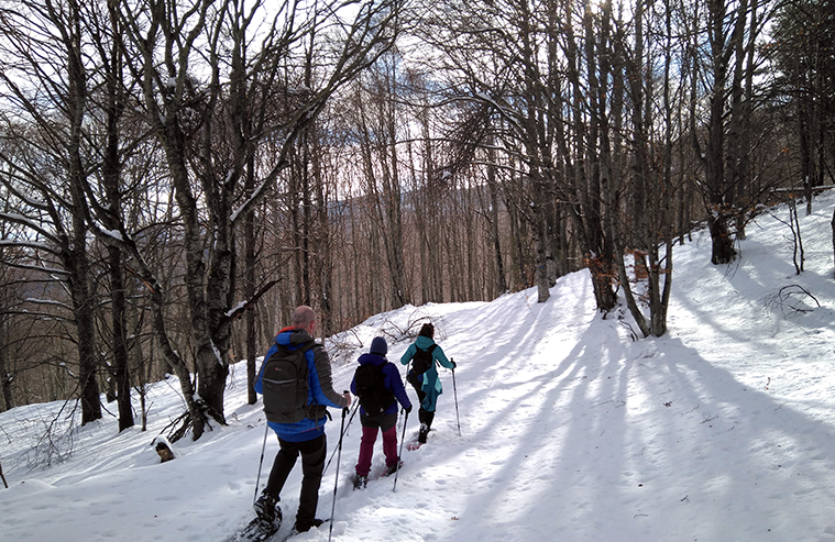 Ven a disfrutar con nosotros de una ruta con raquetas de nieve en Ezcaray y vive una sensación única caminando sobre el manto nevado. Descubre el maravilloso paisaje invernal de la Sierra de La Demanda y respira la tranquilidad y la paz que ofrecen sus bosques en invierno. Una experiencia gratificante y recomendable 100%. También puedes disfrutar del paseo sobre la nieve en los soleados días de primavera, una época ideal para estas excursiones.